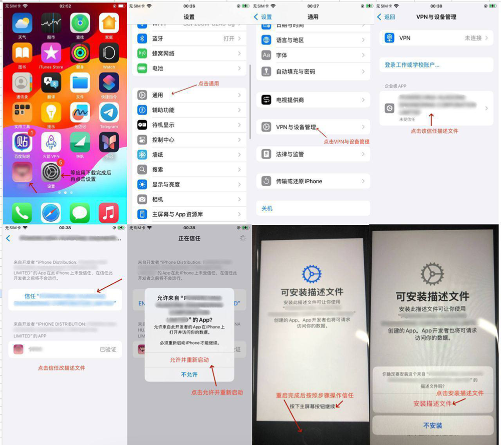 安装后需要点击「一键信任」或进行以下设置才可以使用